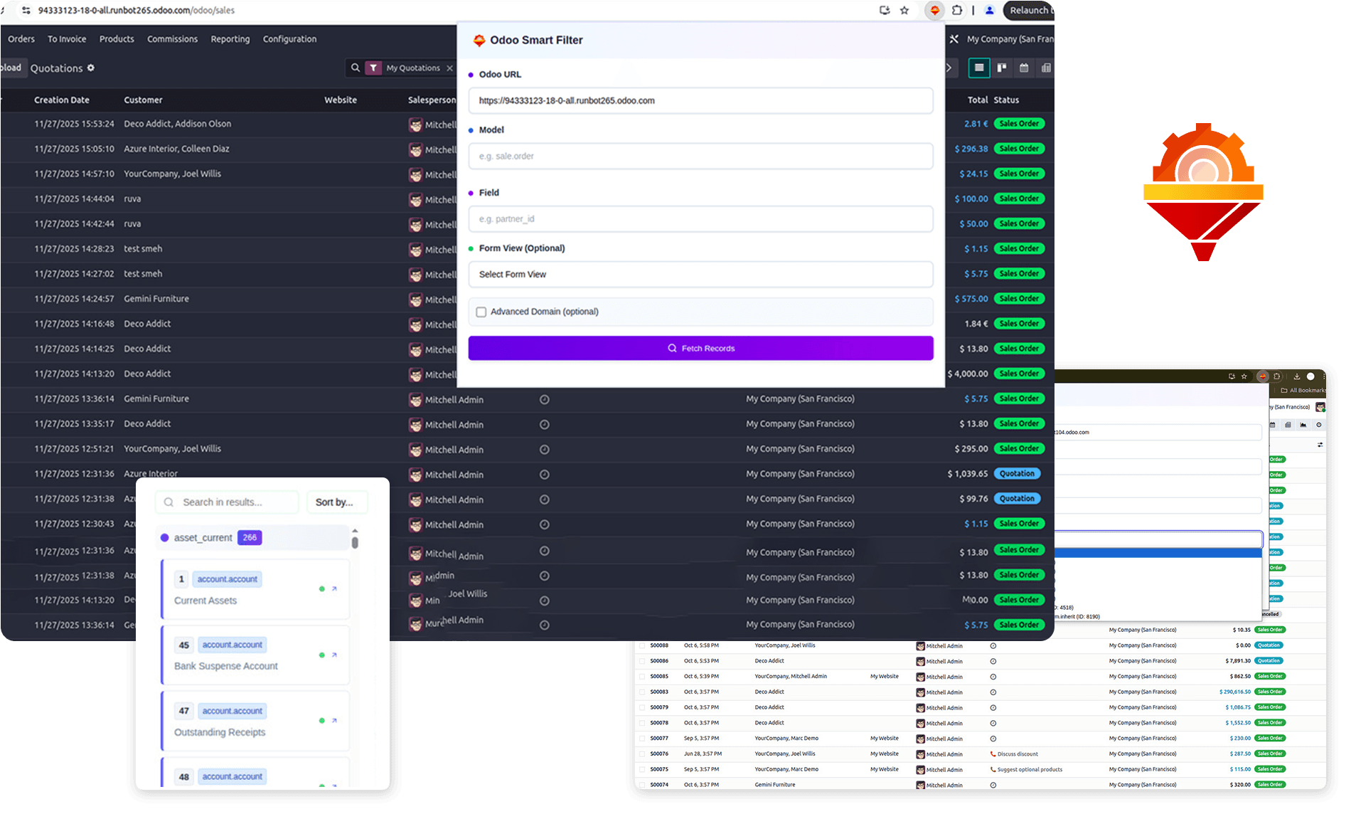 With this extension, you can easily filter records from any model you have access to right. You no longer need to navigate to the specific model’s view to apply filters or find the records you need.