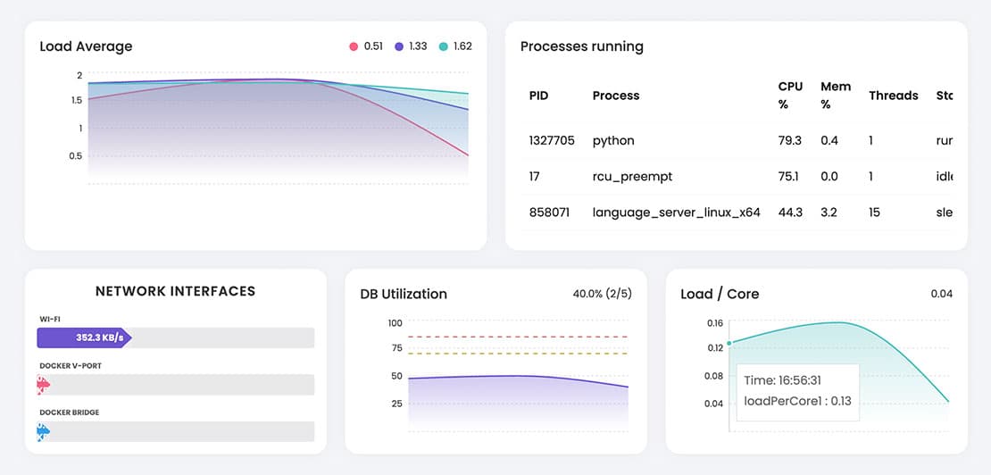 Track server workload in real time to detect spikes early, maintain system stability, and ensure smooth performance across your Odoo environment.