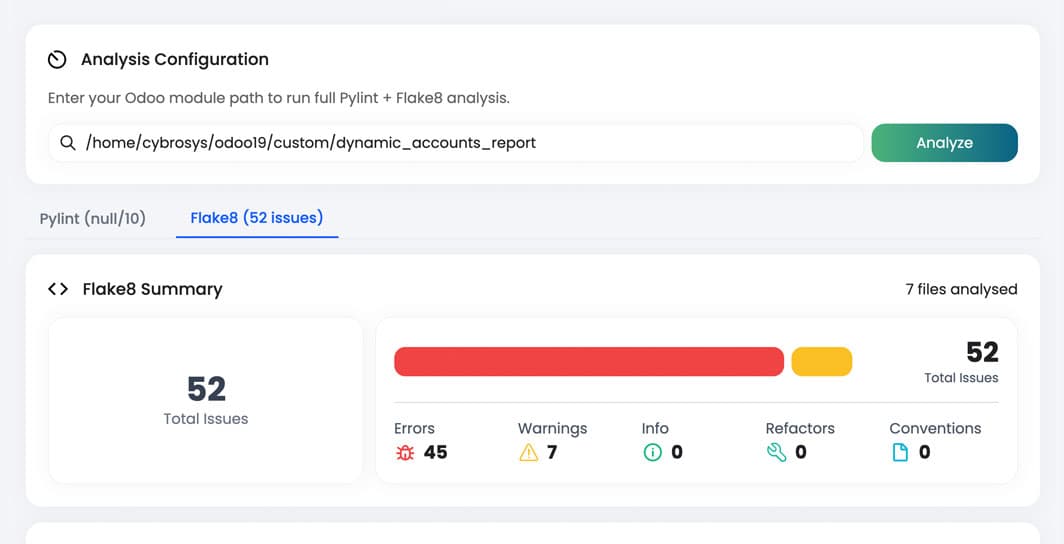 Analyze module stability and performance in one view to detect issues early and maintain reliable, high-quality modules across your Odoo environment.