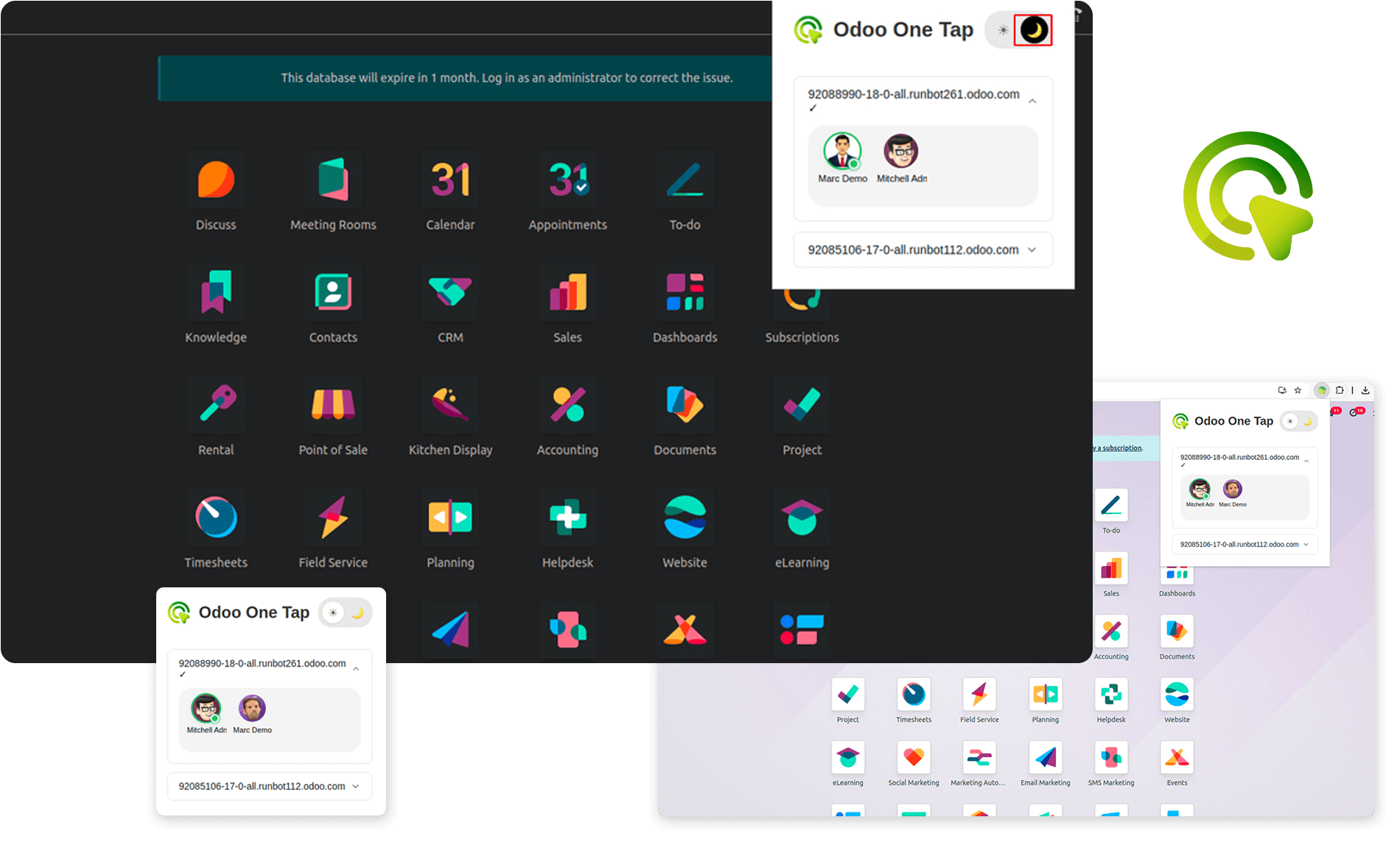 Odoo One Tap lets you instantly switch between multiple Odoo users and instances with a single click, saving time and improving workflow efficiency for developers, testers, and business users.