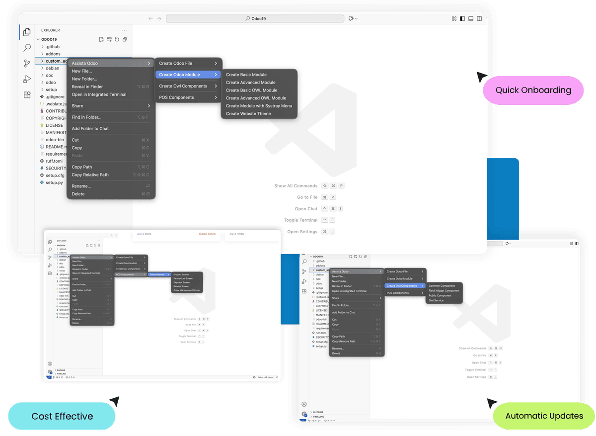 Odoo Helper for VS Code lets you create Odoo modules instantly with a structured. Generate clean module scaffolding that reliable development.
